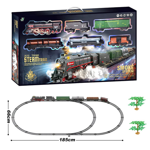 Electric Steam Train Tracks Model Sound Light Smoke System Toys 88pcs Vehicle Rail Track Classical Train Series with Smokes Light & Sound Under The Christmas Tree Steam Train Toy Set