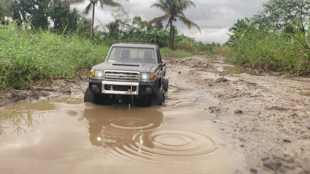 1/12 RC Crawler--MN82PRO is a simulation pick-up truck of LC79, with exquisite interior, a 1/12 scale strong strip soft tires, a brushed 280 motor, 17g waterproof servo, and a 4WD drive system. The engine hood and the tailgate are openable. This crawler RC car is perfect for RC Hobbiers